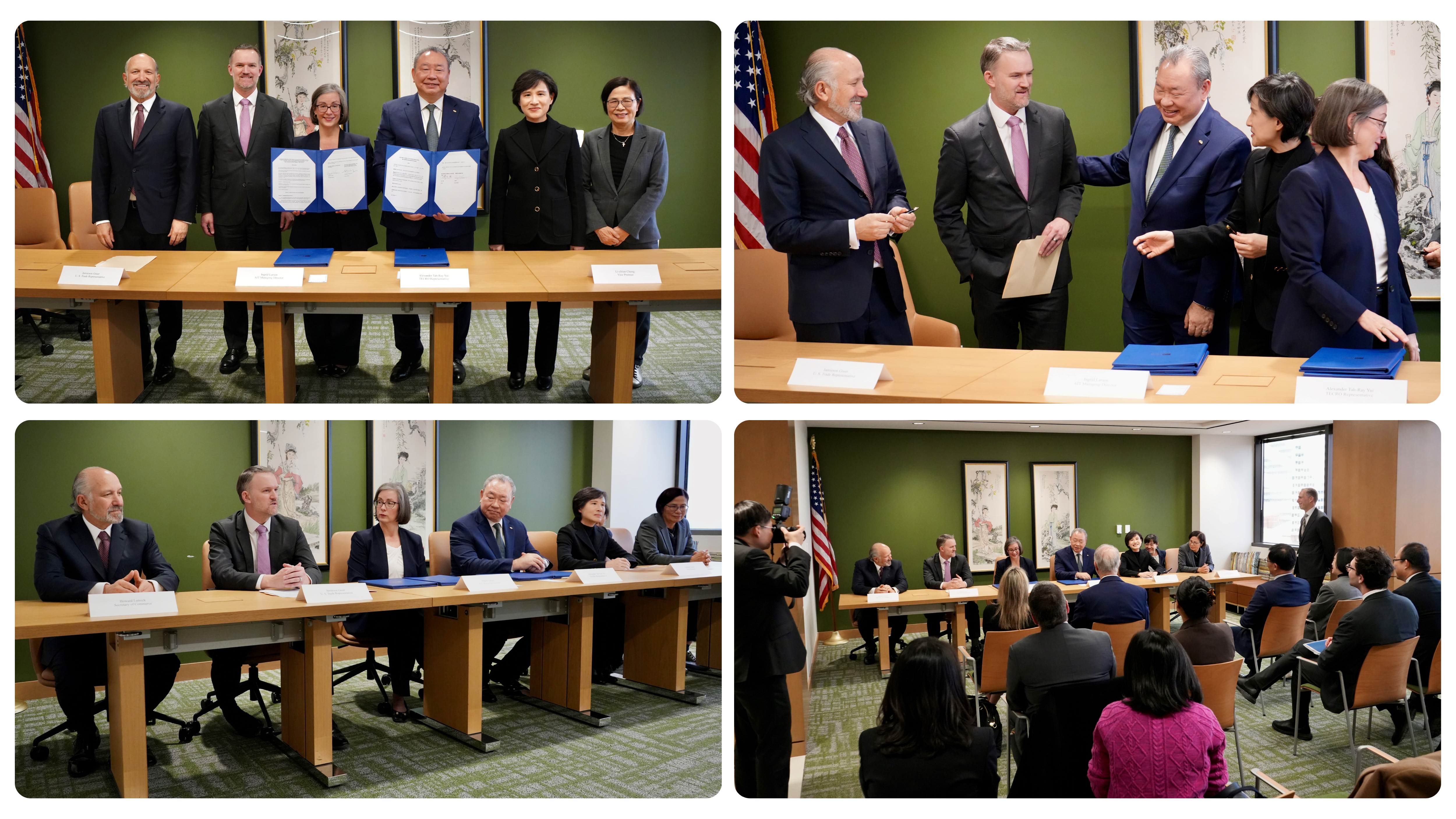 WASHINGTON — Today, Ambassador Jamieson Greer attended the signing of an Agreement on Reciprocal Trade between the United States of America and Taiwan, under the auspices of the American Institute in Taiwan and the Taipei Economic and Cultural Representative Office in the United States. Taiwan’s Vice Premier Li-chiun Cheng and Minister without Portfolio Jen-ni Yang also attended the signing.